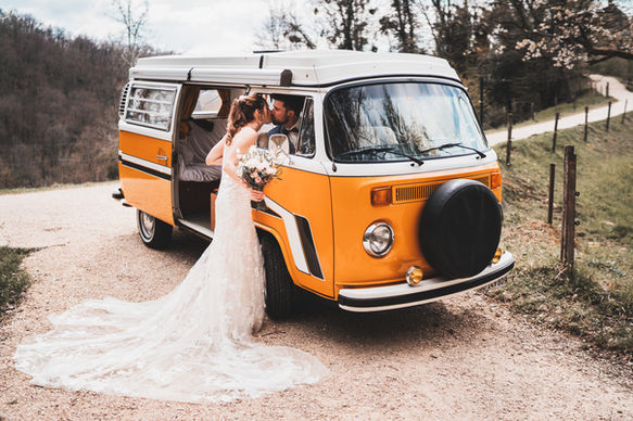 Mary-Lou ist ein VW Bus T2 aus dem Jahr 1977 und kann inklusive Chauffeur für besondere Anlässe gebucht werden – zum Beispiel für eine Fahrt an der Hochzeit vom Standesamt zur Festlocation.